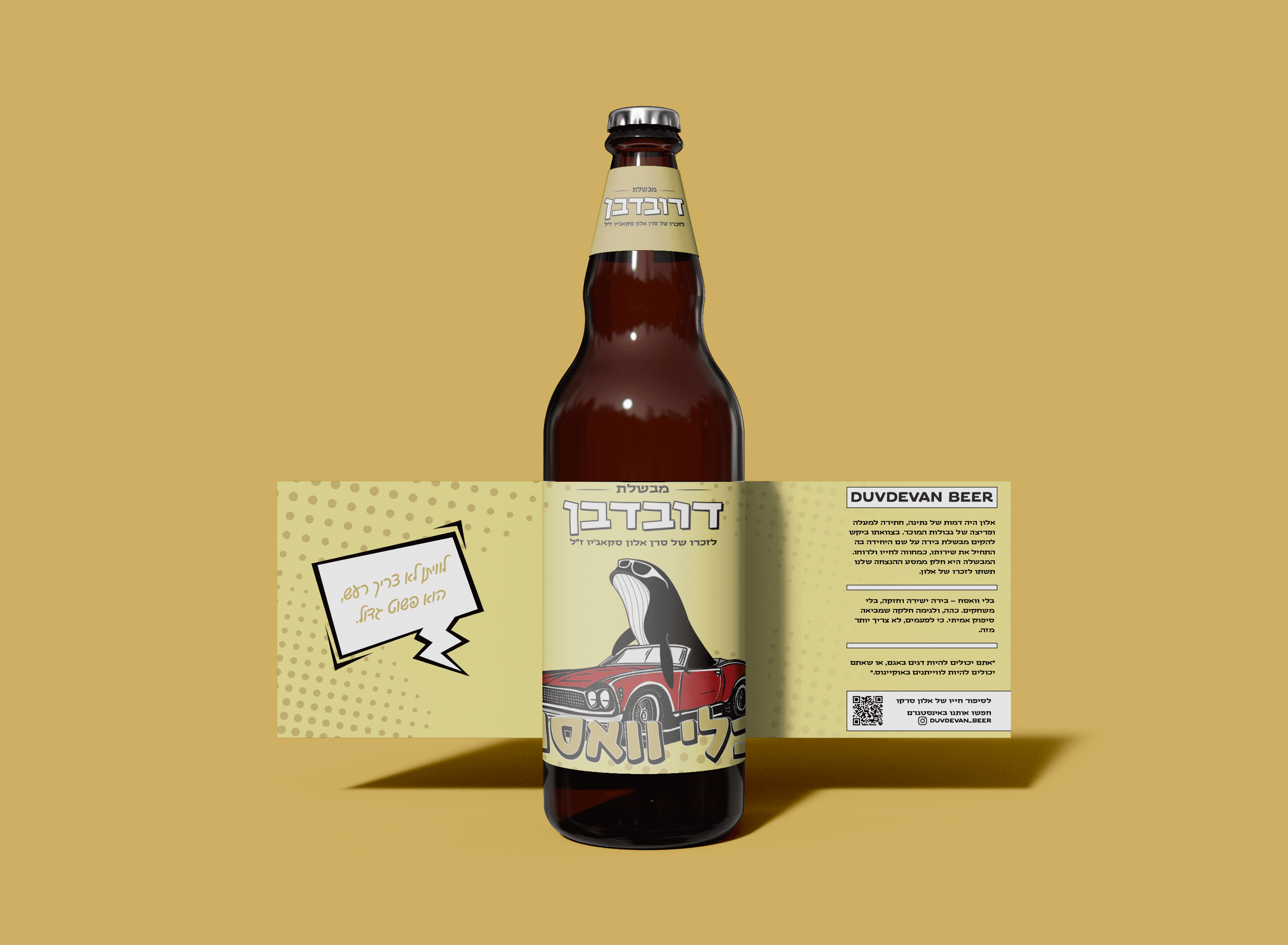 במסגרת הפרויקט פיתחתי שפה ויזואלית מלאה לסדרת הבירות, הכוללת פלטת צבעים ייחודית לכל טעם, אייקונים וסמלים שמחוברים לדמותו ולסיפורו של אלון, ועיצוב תוויות המשלבות רגש, חוסן ונוכחות.