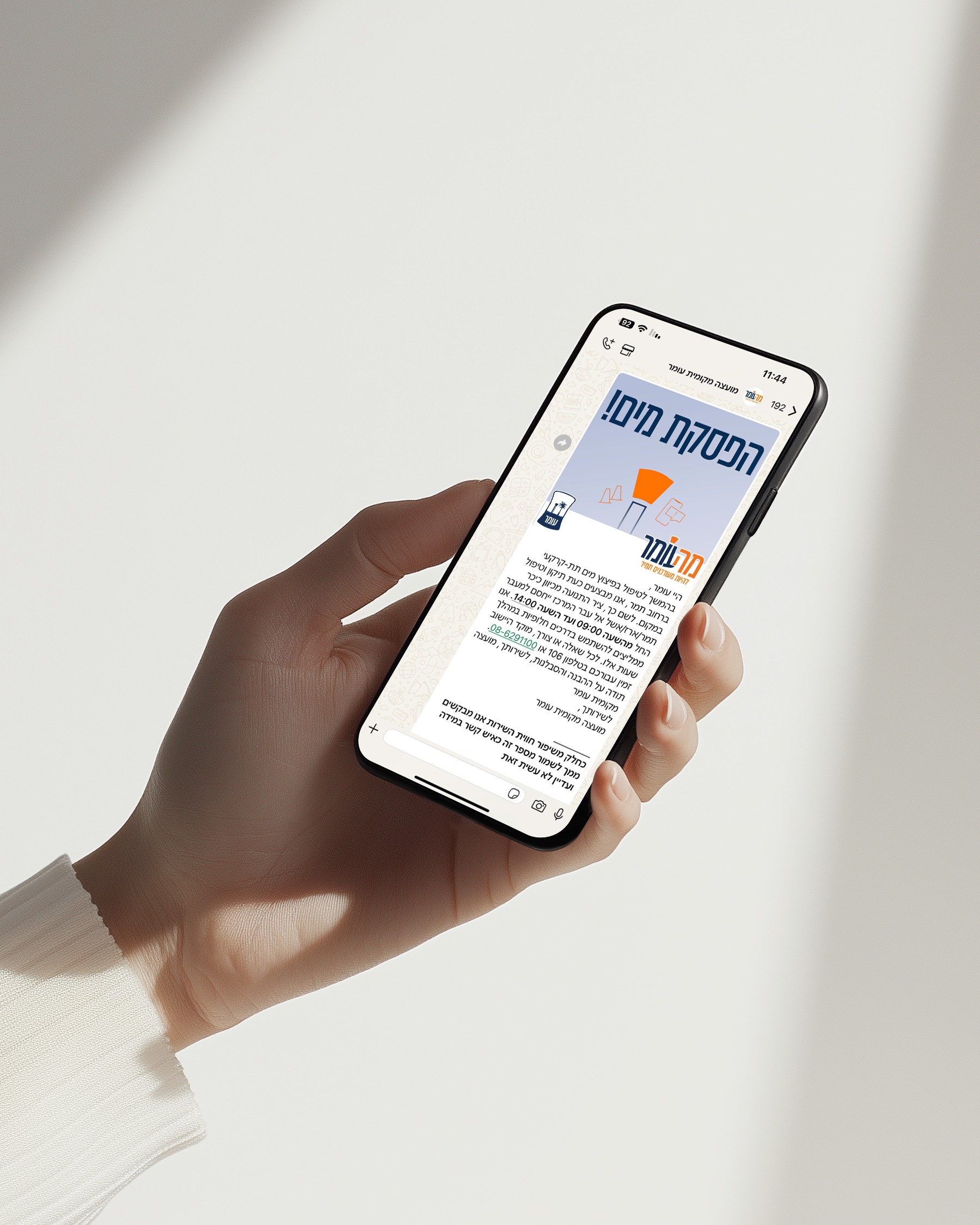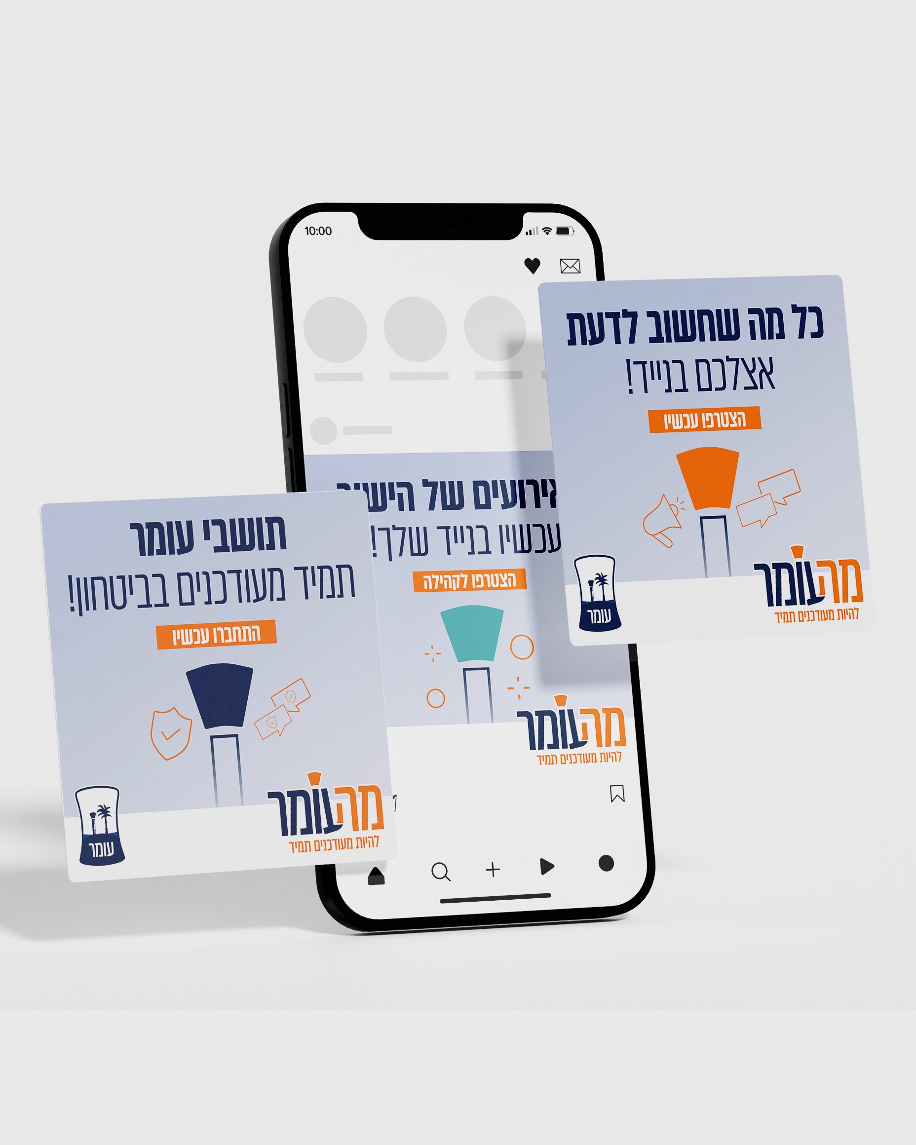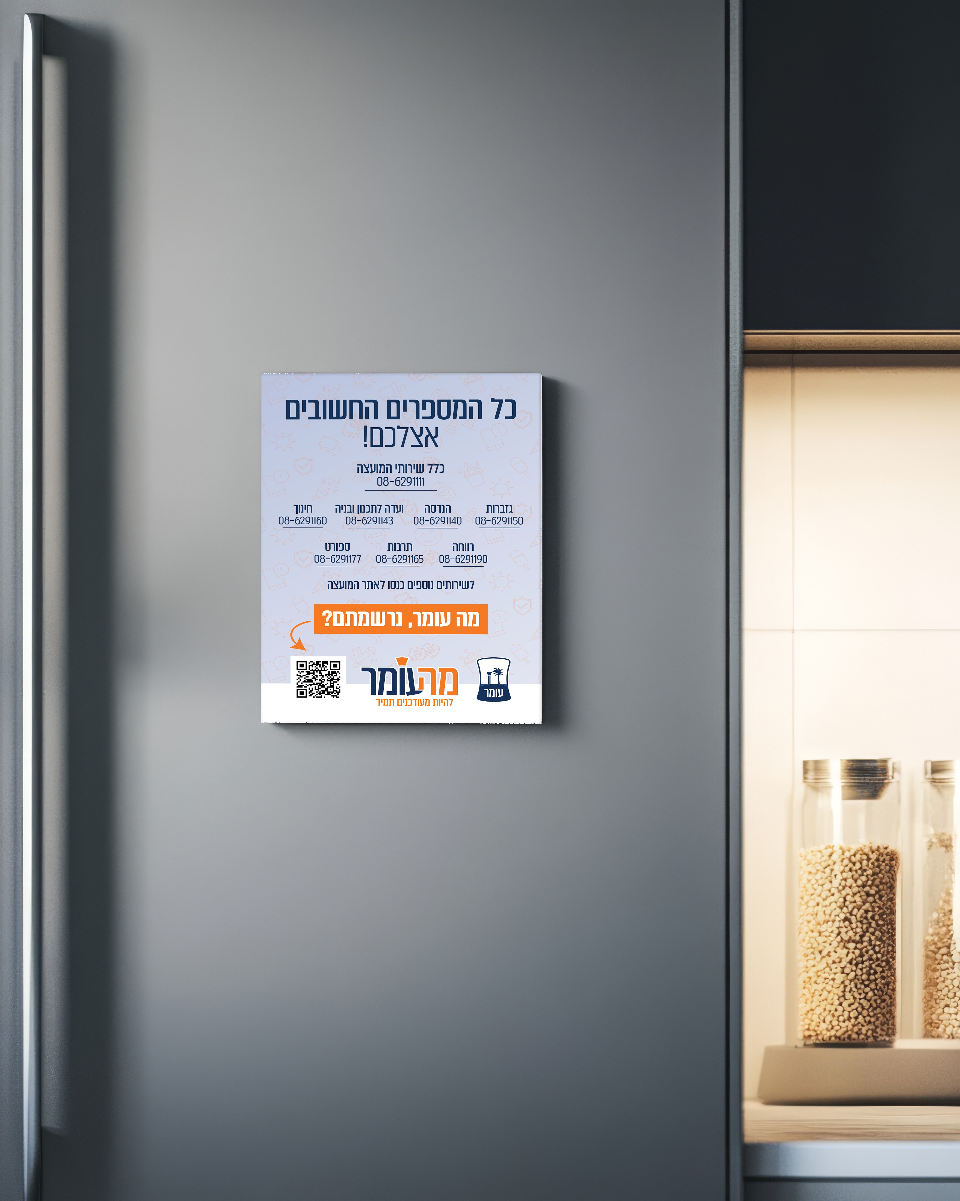 "מה עומר" היא פלטפורמה קהילתית שמטרתה לחזק את קשרי התקשורת בין המועצה לתושבים. במסגרת הפרויקט פיתחתי שפה גרפית ושיווקית מלאה עבור מערכת ההודעות לתושב — כולל הגדרת זהות ויזואלית, צבעוניות, אייקונים, עקרונות עיצוב ותשתית קריאייטיבית המאפשרת אחידות בין כלל המסרים והערוצים.